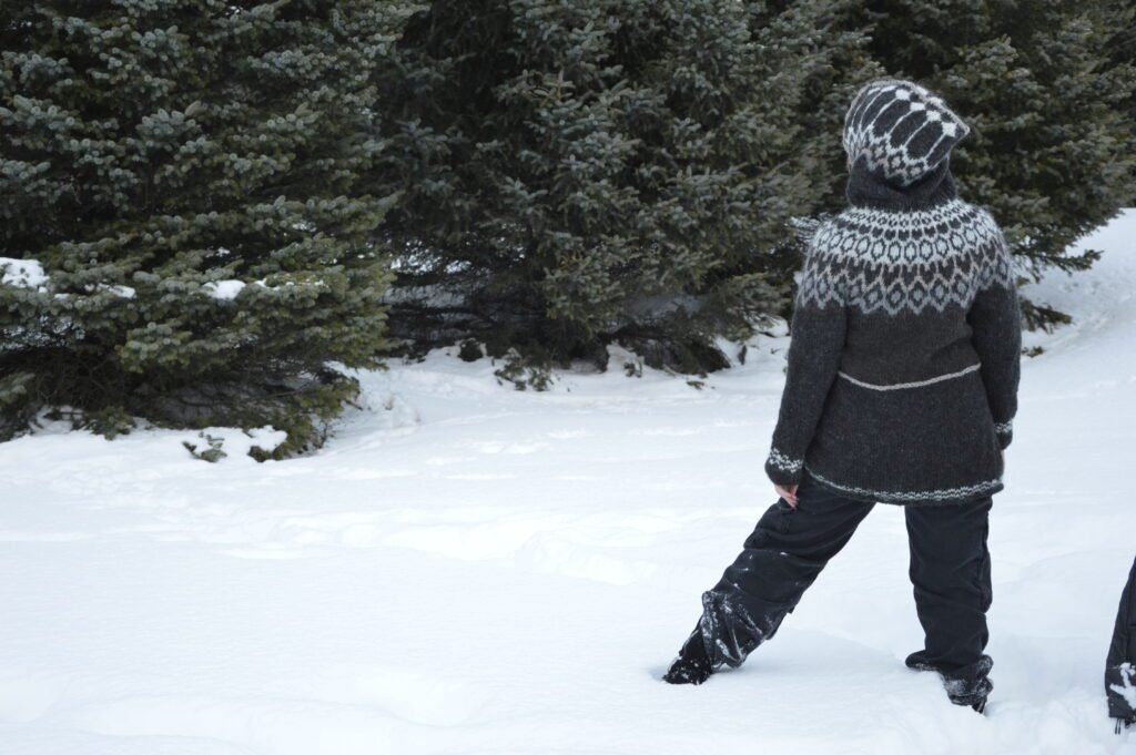 Normal jumper without hood or zipper. I need at least two weeks to make one.ย Price depends on size and how many colours do you want to use.ย There are many patterns of Icelandic sweaters. You can choose one that I’ve already done. Or find a completely new one.